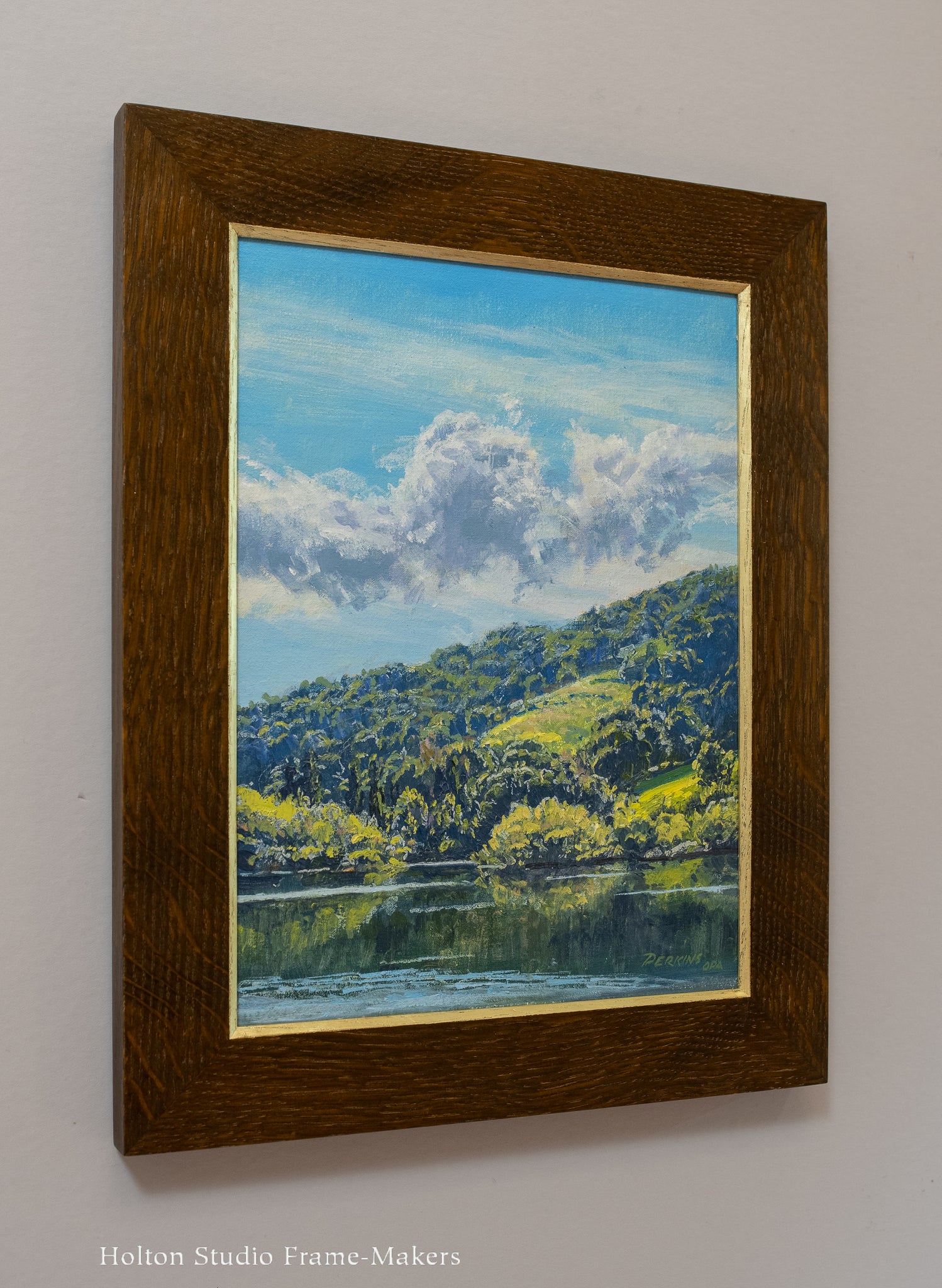Framed in a No. 1.6—1 3/4" with 18kt gilt sight edge. Quartersawn white oak with Medieval stain.
