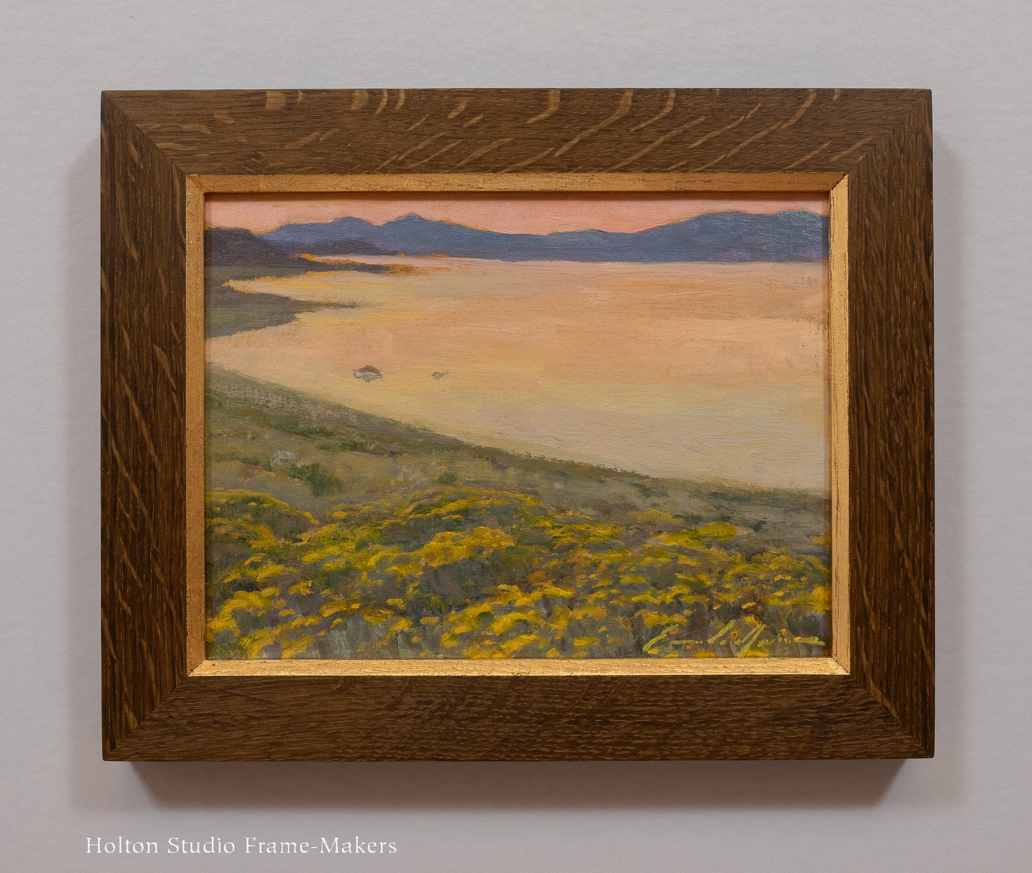 Framed in a No. 1.6—1 1/4" with rose gold sight edge. Fumed quartersawn white oak with clear linseed oil finish.