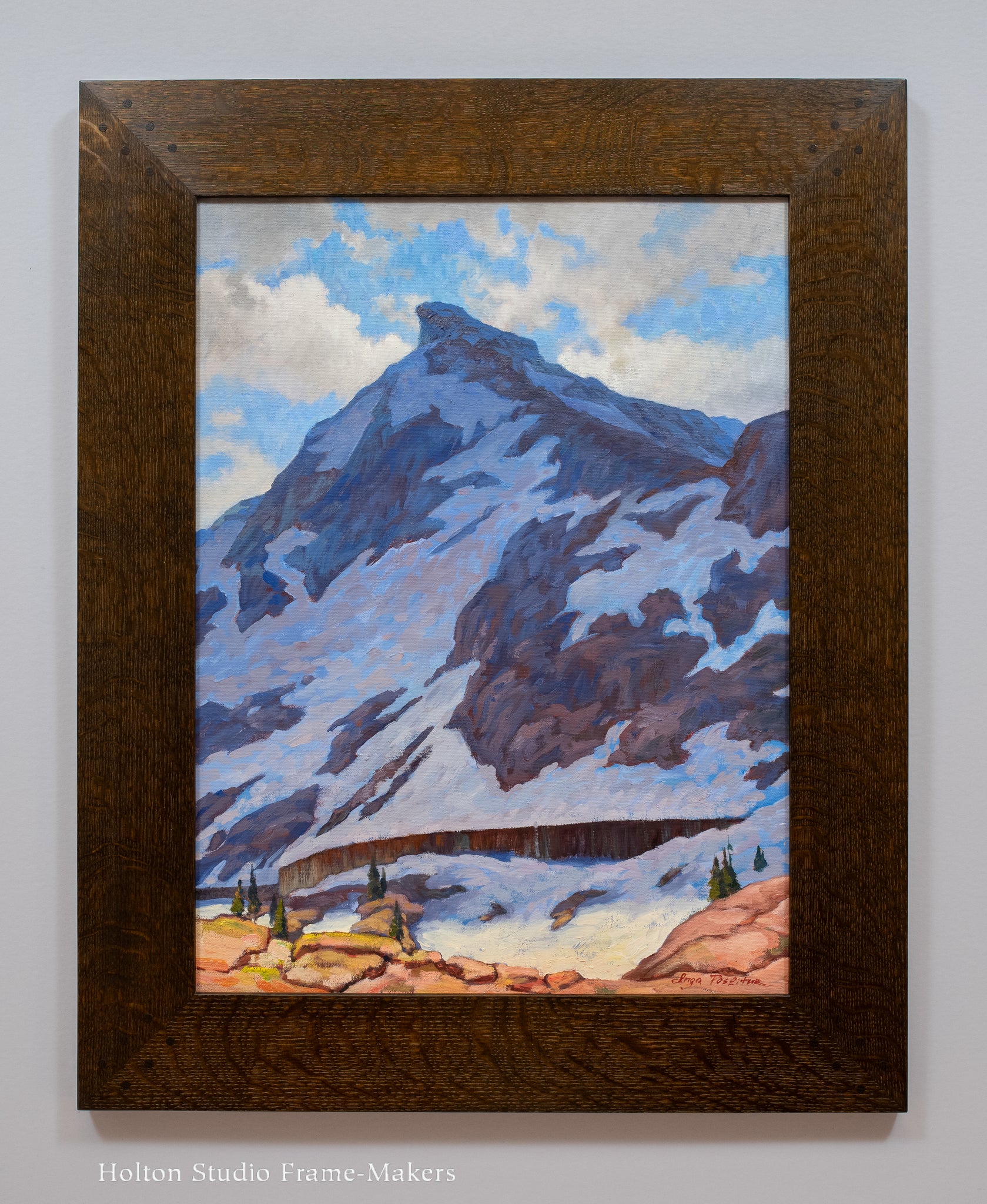 Framed in a No. 1—3" with corner flush dowels. Quartersawn white oak with Medieval stain.