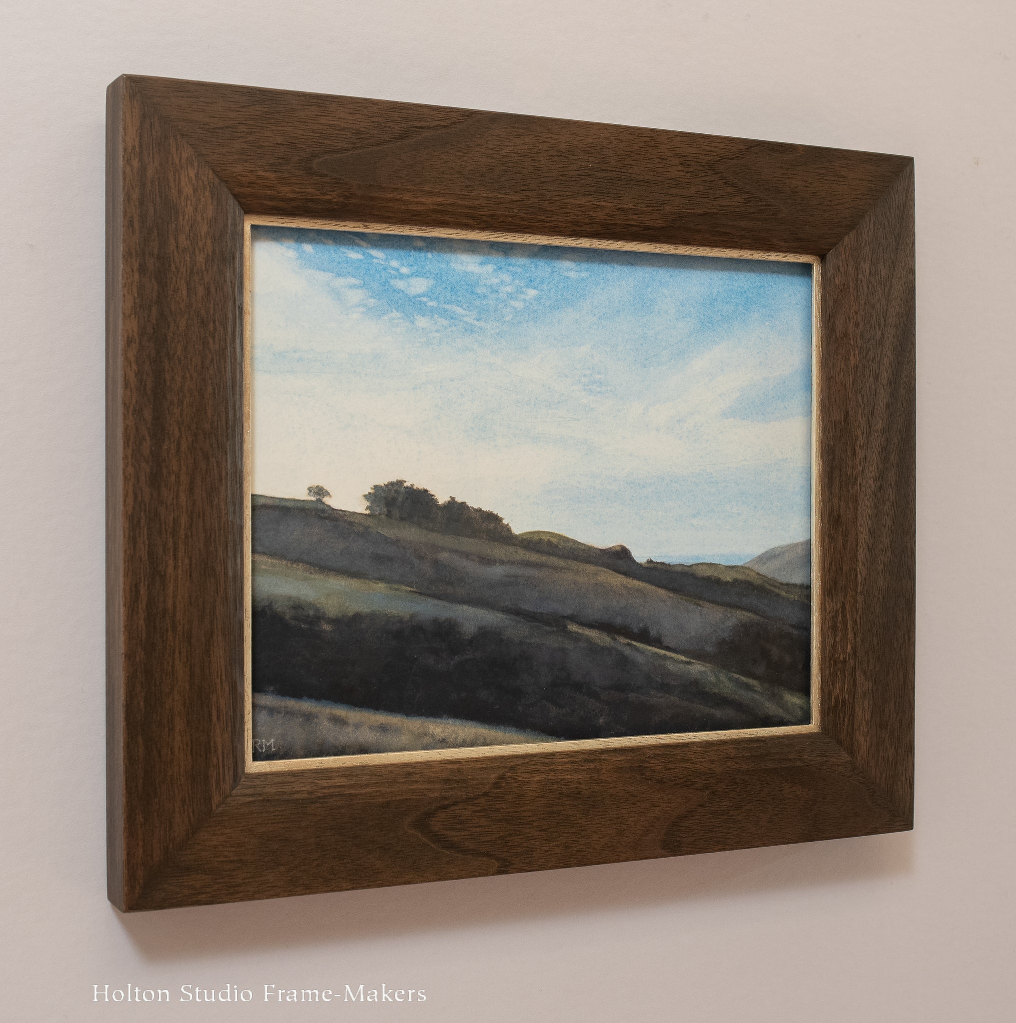 Watercolor on paper, 8" x 10". Framed in a No. 1.4 CV—1 3/4" in walnut with Black Wash stain. 12kt gilt slip. Archivally framed with UV-resistant and glare-reducing Museum glass.