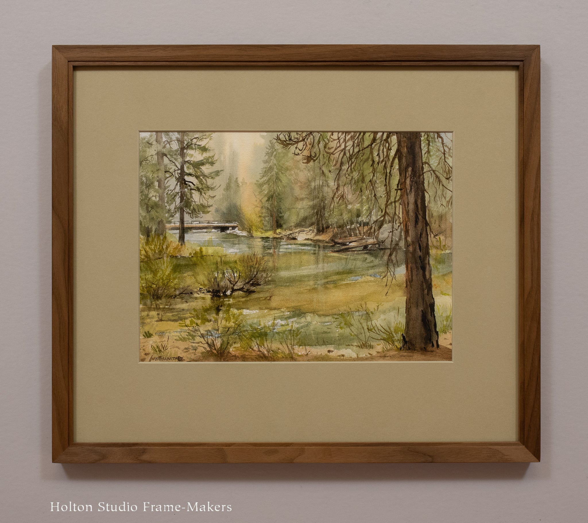 Watercolor on paper, 8-3/8" x 11-3/8". Framed in a No. 2.1 —3/4" in walnut with clear finish. Archivally framed with UV-resistant and glare-reducing Museum glass.