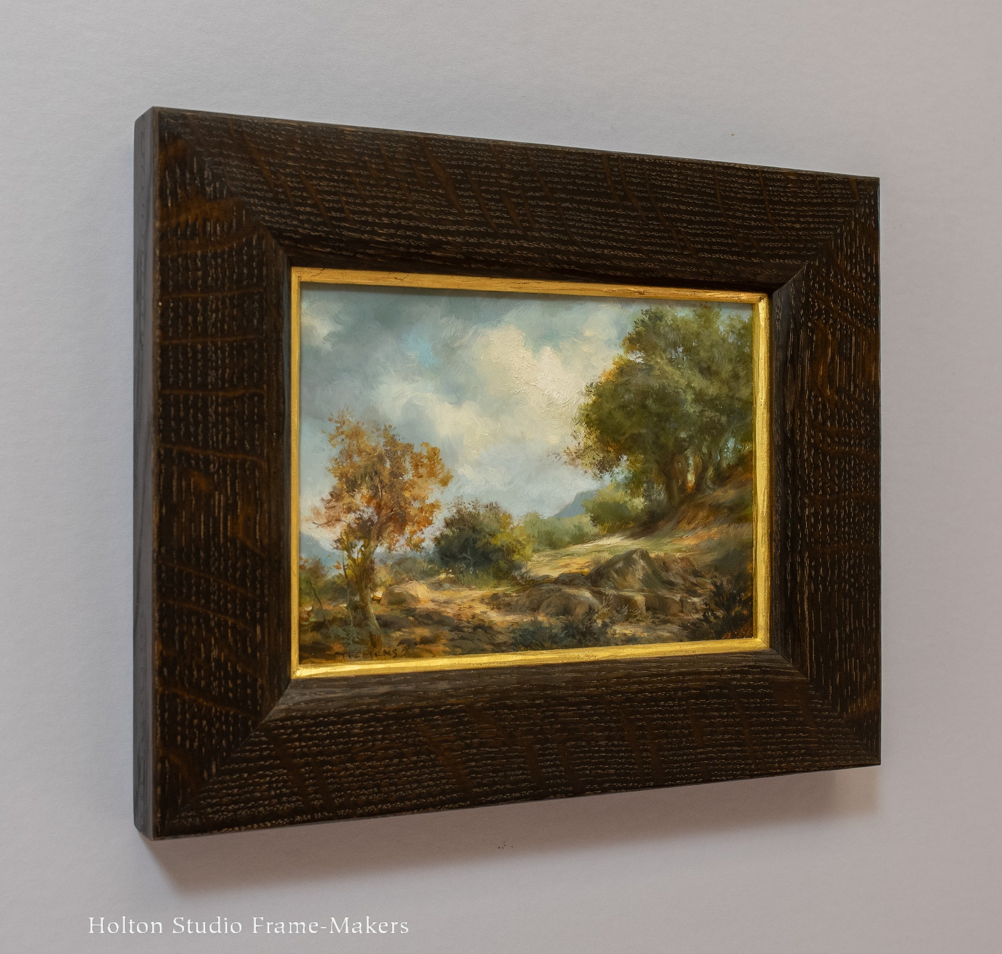 October 2025. Oil on panel, 5" x 7". Framed in a No. 1.4 CV—1-3/4" in quartersawn white oak with Saturated Medieval stain. 23kt gilt slip.